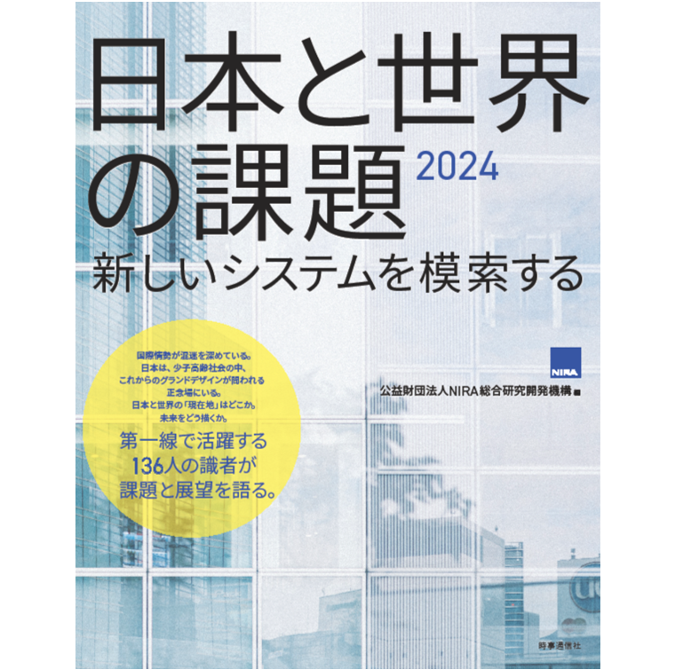 2024.06.04 日本と世界の課題2024【テーマ別】 日本と世界の「現在地」はどこか。未来をどう描くか。NIRA総研では、2024年1月に「日本と世界の課題2024―転換点を迎える日本と世界」を公表、総勢136名の専門家にご寄稿いただいた。これについて今回、改めてテーマ別に分類したページを作成し、【識者氏名順】【テーマ別】と2種類の方法で検索が可能となったので、ぜひ活用いただきたい。 NIRA総研
