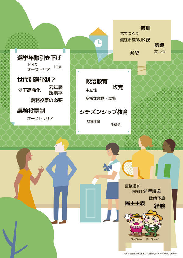 わたしの構想No.25 2016.09.10 若者の政治参加を促す この記事は分で読めます シェア Tweet 若者の政治への無関心は、先進国共通の課題だ。若年層の政治参加を促すため、各国・各地域ではどのような取り組みがあるのか。わが国の今後に向けて得られる示唆とは何か。 PDF(日本語) ABOUT THIS ISSUE企画に当たって 18歳選挙権の次なるステップに向けた提言 谷口将紀 NIRA総合研究開発機構理事/東京大学大学院法学政治学研究科教授 今夏の参議院選挙より、選挙権年齢が引き下げられ、18歳からの投票が実施された。将来を担う若い世代が有権者に加わることで、若年層の政治参加が促され、世代間格差が是正されることが期待されているが、参議院選挙での若者の投票率は低く留まった。若者の政治に対する無関心は、先進国共通の課題だ。各国、各地域では、若者の政治参加を促すためにどのような取り組みを行っているのか。今後のわが国の若者の政治参加のあり方についてどのような示唆を得られるのか、考察する。 EXPERT OPINIONS識者に問う 若年層の政治参加を促すため、各国・各地域ではどのような取り組みがあるのか。わが国の今後に向けて得られる示唆とは何か。 網谷龍介津田塾大学学芸学部教授 河野武司慶應義塾大学法学部教授 見世千賀子東京学芸大学国際教育センター准教授 時田博機山形県遊佐町長 牧野百男福井県鯖江市長 インタビュー実施:2016年5~6月インタビュー:榊麻衣子(NIRA総研研究コーディネーター・研究員) 企画に当たって 18歳選挙権の次なるステップに向けた提言 谷口将紀 NIRA総合研究開発機構理事/東京大学大学院法学政治学研究科教授 KEYWORDS 選挙権年齢、18歳以上、若者の投票率、若者の政治参加、世界共通の課題 低投票率に留まった若年層 2016年6月に公職選挙法が一部改正され、選挙権年齢が18歳以上に引き下げられた。国政選挙では、同年7月10日の参議院議員通常選挙から適用された。 これに合わせて、高校生用副教材「私たちが拓く日本の未来」を政府が作成するなど、若者に政治参加を促す官民挙げてのキャンペーンが繰り広げられた。 ところが、はたして今回の参議院選挙における18歳から19歳までの投票率は、有権者全体の投票率を大きく下回った。2013年の参議院議員選挙から解禁され、当時は大いに注目を集めながら、いまでは後景に退(しりぞ)いた感があるインターネット選挙運動と同様、若者の政治参加も、人々の関心から遠のいてしまうのだろうか。 答えは否である。より厳密にいえば、否でなければならない。6月にイギリスで行なわれた欧州連合(EU)離脱の是非を問う国民投票では、若者のあいだでは残留派が圧倒的であったにもかかわらず、結果はEU離脱派が多数を占めた。もし、若年層の投票率がもう少し高ければ、あるいは高年齢層が若者の声にもう少し聴く耳をもっていたら、同国の進路は違うものになっていたはずだ。そして、欧州連合離脱に伴う政治的・経済的損失というツケを今後支払うのは、ほかならぬイギリスの若者である。 まして日本では、巨額の財政赤字や急速な人口減少などの諸課題を前に、これからは「負担の分かち合い」が政治のテーマとならざるをえない。そして、こうした負担をもっとも引き受けなければならないのが、現在の若年層である。日本の将来を担う彼らの意見をないがしろにして良いはずがない。国立国会図書館の調査によれば、世界199カ国の国と地域のうち約9割が18歳選挙権を採用しており、このたびの選挙権年齢の引き下げは、遅ればせながらの世界標準へのキャッチアップにすぎない。若年層の政治参加をさらに促し、彼らの意見をより反映しうる政治の実現に向けて、次なるステップを考えるのが本企画の趣旨である。 投票のために「通りを渡らせる」工夫 ようやく18歳選挙権を実現した日本に対して、オーストリアの選挙権はすでに16歳以上に引き下げられている。また、ドイツでも、一部の地方で16歳選挙権が導入された。網谷龍介氏(津田塾大学)は、早くから投票に参加した若者のあいだでは政治意識が培われ、彼らは20歳以降になっても他の年齢層よりも投票率が高くなるという見方を紹介した上で、学校教育と並んで、個別政策を超えた社会像・将来像をもたせるために政党が果たすべき役割の重要性を説いている。 世代別に選挙区を分けて、若年層の代表を選ぶというアイデアもしばしば論壇で見られる。しかし、河野武司氏(慶應義塾大学)によれば、世代別投票制度を理事選挙に導入した日本選挙学会では、「年長区」と「年少区」で投票率に差があるために代表としての正当性に歪みが生じる、会員(有権者)全体の高齢化に伴い五十歳近くまでが「年少区」に分類されるなど、制度の逆機能が明らかになっている。 こうした問題点を補うものとして、河野氏が提案した義務投票制を実施しているのが、オーストラリアである。それと表裏をなすのが若者の政治的教育だが、見世千賀子氏(東京学芸大学)によると、同国のシチ