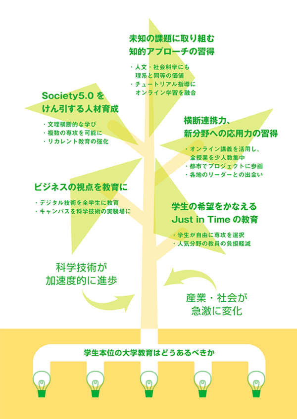 English version わたしの構想No.38 2018.10.10 学生本位の大学教育 この記事は分で読めます シェア Tweet 科学技術が急速に進歩し、産業や社会が急激に変化する時代。学生が卒業後の長い職業人生で活躍し続けるために、大学教育はどうあるべきか。 PDF(日本語) PDF (ENGLISH) ABOUT THIS ISSUE企画に当たって 大学はどう変わるべきか? 発明家と起業家を輩出せよ 金丸恭文 NIRA総合研究開発機構理事長/フューチャー株式会社代表取締役会長兼社長グループCEO 科学技術が加速度的に進歩し、産業や社会が急激に変化する時代に、学生が大学で学んだことを自らの職業生活や社会活動に生かし、長い職業人生を満足して送ることができるようになるためには、今、大学教育に何が求められているのだろうか。学生本位の教育を実現するために、大学はどのような役割を果たすべきなのだろうか。日本の教育行政の指針や、世界の代表的な大学の取り組みを読者に紹介し、今後のわが国の大学教育のあり方について考えを深める機会としたい。 EXPERT OPINIONS識者に問う デジタル時代における学生本位の大学教育とは何か。その実現のために、大学は何をすべきか。 林芳正文部科学大臣(*) マーティン・ウィリアムズオックスフォード大学副学長代理(教育) 宮川繁マサチューセッツ工科大学教授/東京大学特任教授 スブラ・スレシュナンヤン工科大学学長 ベン・ネルソンミネルバ大学創立者兼CEO インタビュー実施:2018年7月~8月インタビュー:榊麻衣子(NIRA総研研究コーディネーター・研究員)、川本茉莉(同) データで見る 米国のコンピューターサイエンス専攻学位取得者の推移:時代の状況を反映 米国の大学教員の雇用:柔軟性を高めている 各国の高等教育入学者の専攻:専攻分野別の比率 マサチューセッツ工科大学(MIT)の卒業生(2017年) 世界の大学の留学生比率 企画に当たって 大学はどう変わるべきか? 発明家と起業家を輩出せよ 金丸恭文 NIRA総合研究開発機構理事長/フューチャー株式会社代表取締役会長兼社長グループCEO KEYWORDS 得意なこと・好きなこと、稼げる力を持った学生、稼ぐ力を備えた大学、ガバナンス改革、産と学が融合したトップ 衰退が鮮明になった日本 平成が終わろうとする今、日本の衰退は誰の目にも明らかだ。世界の時価総額ランキングから日本企業は姿を消し、科学研究では論文数が激減している。英科学誌『Nature』は日本の危機的な状況について特集を組んだほどだ。日本はすっかりイノベーションを起こせない国になった。 日本人の収入も、先進国の基準からすれば格段に低い。消費者にそっぽを向かれるのを恐れた企業は思考停止して安売りに走り、デフレマインドからみなが抜け出せずにいる。今の日本はいわば「牛丼国家」である。 対照的なのがEU諸国である。EUは価格勝負で新興国に勝てないことを早い段階で悟り、安売りからの脱却を目指した。特に2000年以降、現代の知識基盤社会に適応できる人材を養成する教育にEUは力を注いだのである。 インプット指向から抜け出す 日本の最大の問題点は、社会全体が「インプット指向」から抜け出せないことにある。すでに存在する知識を網羅的に集めれば集めるほど、新たな閃(ひらめ)きは生まれなくなり、アウトプットも減ってしまう。日本の学校教育は、記憶力を競い合う時代遅れのクイズ番組のままだ。 オックスフォード大学副学長代理のマーティン・ウィリアムズ氏は、教育の目的は「学生に向学心を植え付け、未知の課題に自信を持って取り組み、議論と論拠を厳密に見極める能力を習得させること」だという。その通りだ。 日本の学校では主要5科目を重視し、これらに秀でた記憶力の高い生徒は「エリート」として中央省庁の官僚や大企業のサラリーマンになるが、こうした人材には「稼ぐ力」が乏しい。日本型エリートは起業家精神に程遠く、ひたすら安定したポストを求める。エリート以外の9割の人が生き生きと活躍できる社会をデザインする方が、日本のGDPを増やせるのではないか。 多様な物差しで生徒の可能性を育む 日本の学校教育は主要5科目の成績を至上のものとして大量の脱落者を生み出し続けているが、もはやわれわれにそんなことをしている余裕はない。 先端的な教育を行っているデンマークの小学校を視察した際、私は校長に「教育にとって1番重要なことは何か」を尋ねた。「生徒の尊厳を傷つけないこと」、それが彼の答えだった。この小学校では、ITの得意な生徒が学内生徒のITサポートに当たるなど、各人の得意分野を生かし、互いにリスペクトし合う関係が作られていた。 日本でも、小中学校では生徒が自分の得意分野を見つけ、早めに自分の進路を決められるよう手助けをすべきだ。高校や大学では学科のポートフォリオを変えて、社会で稼げる実践的な内容を学べるようにする。もちろん、すべての人間が突出して好きなこと、得意なことを持つわけではない。だからこそ、学校側は「これが得意になれば食べていける」という学科、科