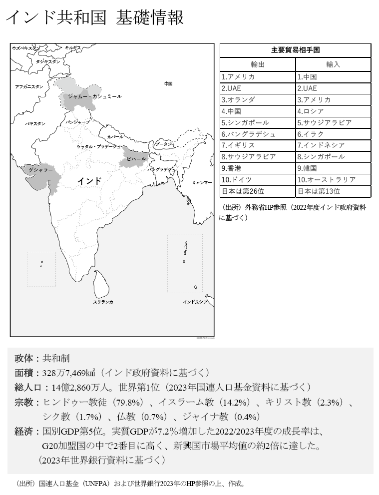 研究報告書 2023.12.11 アジアの「民主主義」第1章インド権威主義革命と「世界最大の民主主義国」の行方 この記事は分で読めます シェア Tweet 中溝和弥 京都大学大学院アジア・アフリカ地域研究研究科教授 概要 台頭するグローバル・サウスの代表格であるインドは、日増しにその存在感を高めている。2023年には人口が世界第1位、国別GDPでは世界第5位となり、2060年まで続く人口増加が、更なる経済成長を導くことが予測されている。そのような「世界最大の民主主義国」インドは、国際社会の中で大国と並び発言力を強める一方、国内では近年、民主主義の危機、すなわち権威主義化が指摘される。10年近くに及ぶモーディー政権下のインドで、一体何が起こっているのか。 1947年にイギリスから独立して以降、インドはいわゆる途上国のなかでは例外的に民主制を維持し続けた。国家原則として民主主義、社会主義、世俗主義を掲げ、宗教の違いに拘わらず、インドに生まれた者がインド人として共に生きていく国家を目指した。宗教、カースト、言語など世界でも稀に見る多様性を誇るインドで、民主主義は「多様性のなかの統一」を実現する上で、重要な制度として機能した。 その民主主義が、現在、大きく揺らいでいる。2014年に政権を掌握したナレーンドラ・モーディー首相は、ヒンドゥー至上主義の制度化を進め、宗教的少数派であるムスリムを、暴力的・制度的に排除しようとしている。本章においては、まずモーディー政治の特徴を把握した上で、これが出現するに至った政治的経緯を説明する。その上でモーディー首相の権威主義革命が世界政治に影響を及ぼし始めている点を指摘する。これらを踏まえた上で、権威主義革命に抗う手立てとして、グローバルな市民社会のネットワークの重要性を指摘する。アジアの「民主主義」・序論―欧亜比較の観点から―・第1章インド―権威主義革命と「世界最大の民主主義国」の行方―・第2章シンガポール―シンガポール政治の変容と将来:緩やかに進む民主化への道―・第3章パキスタン―ポピュリスト政党後の政党連合政権、軍部の影響力―・第4章フィリピン―グローバル化とフィリピンの政治変動―・第5章タイ―タイの今とこれから―・第6章インドネシア―インドネシアの今とこれから―・第7章ミャンマー―ミャンマー危機とアジアの民主主義― PDFで読む INDEX はじめに 1.主要政党と野党、その動き インド政党政治の展開 モーディー政治の特徴:「服従の政治」 「ヒンドゥー国家」の実現 2.どのような勢力と政党が結びついているのか 民族義勇団グループ(サング・パリワール) インド国民会議派による支配 後進カーストの不満 宗教アイデンティティの争点化 アイデンティティの政治 現職不利の法則 下剋上の時代 民主化のパラドクス 3.直近の選挙 2019年総選挙 今後の動向 4.対外関係:「服従の政治」の国際化 5.権威主義革命にどう抗うか インド共和国 基礎情報 図表表1 政権年表図2 「服従の政治」の概念図写真 2004年総選挙の選挙ポスター(インド・ビハール州)図3 2つのインド図4 地主動員モデル図5 カースト動員モデル表6 支持政党変動率(1991~98下院選)表7 再選率(1980~98下院選挙)表8 政権交代率(1989~99州議会選挙)表9 反会議派感情の推移 はじめに 近年、目覚ましい成長を遂げるグローバル・サウスの中で、中心的な役割を担う国の1つがインドである。世界第1位の人口を誇るインドは、2027年にはGDPが日本を抜き、世界第3位になるとも予測されている。国際政治においても、ウクライナ戦争を巡り欧米各国とロシアとの対立が深まるなか、2023年にインドで開催されたG20サミットで自国の主張を共同宣言とすることに成功するなど、インドの存在感は高まりつつある(中溝(2023b))。このように世界の関心を集める「世界最大の民主主義国」のインドで、今、民主主義の危機が進行している。果たして、インドで何が起こっているのか。 本章では、独立後、民主主義国家として歩み始めたインドの政党システムを4つの時期に分け、現在に至るインド政党政治の展開を俯瞰し、現在まで10年近くにわたって政権を掌握するモーディー政治の特徴を把握する。次にヒンドゥー至上主義を支える民族義勇団について説明した後、独立時には異端とされてきたヒンドゥー至上主義が、インド政治のなかで台頭してきた政治過程を説明する。要すれば、カースト・宗教アイデンティティが政治争点化する中で起こった1990年代の民主化が、その反転としてのヒンドゥー至上主義の台頭を招くこととなった。その上で、モーディー政権による権威主義革命が、日本、そして世界に及ぼす影響について示唆する。最後に、進行する権威主義革命に、いかに抗うかを検討する。 1.主要政党と野党、その動き 1947年8月15日、インドは独立した。英領インドがインドとパキスタンに分離された形での独立であった。非暴力主義に基づきインド独立運動を指導したM.K.ガーンディーは、「この独立は私が望んだ