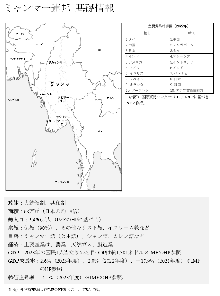 研究報告書 2024.07.31 アジアの「民主主義」第7章ミャンマーミャンマー危機とアジアの民主主義 この記事は分で読めます シェア Tweet 中西嘉宏 京都大学大学院東南アジア地域研究研究所准教授 概要 軍支配による政権が長年続いたミャンマーで、2016年に民主的な選挙で選ばれたアウンサンスーチー政権が誕生した。スーチー政権の発足当初はミャンマー民主化の実現として、国内外から大きく歓迎されたが、それからわずか5年後の2021年に起きた軍事クーデターによってスーチー政権は転覆する。クーデターの発生でミャンマーの民主主義は後退したとされる一方、正統な国家の存在が危ういなかでそもそも民主的な政治の前提条件があるのかどうかも疑問視されている。 現在も軍政が続くミャンマーは、多くの人々が期待していた2020年代の行く末とは大きくかけ離れている。民主化の停滞どころか、軍事政権もまた安定せず、国家という形式そのものが危機に陥っている状態だ。統治能力と正統性を欠いた国家で民主主義が機能することは非常に困難であり、ミャンマーの今後は不確実性が極めて高いといえる。 植民地統治からの独立以降、ミャンマーでは国家としての統治能力の脆弱性と少数民族との国民統合の失敗は大きな問題とされてきた。そして、民主的な権利を制限しながら経済開発に注力するという開発体制、いわば独裁制と民主主義が共存するハイブリッド体制が維持できず、国家が脆弱化したといわれる。民主化が必ずしも万能な最適解ではないことを示すミャンマーの事例は、アジアの民主主義を再考するきっかけとなるだろう。アジアの「民主主義」・序論―欧亜比較の観点から―・第1章インド―権威主義革命と「世界最大の民主主義国」の行方―・第2章シンガポール―シンガポール政治の変容と将来:緩やかに進む民主化への道―・第3章パキスタン―ポピュリスト政党後の政党連合政権、軍部の影響力―・第4章フィリピン―グローバル化とフィリピンの政治変動―・第5章タイ―タイの今とこれから―・第6章インドネシア―インドネシアの今とこれから―・第7章ミャンマー―ミャンマー危機とアジアの民主主義― PDFで読む INDEX はじめに 1.主要政党と野党、その動き 2017年までのミャンマー政治史 2つの危機:(1)2017年ロヒンギャ危機 ロヒンギャ危機の構造的要因 2つの危機:(2)2021年2月のクーデター発生 2.どのような勢力と政党が結びついているのか 3.直近の選挙 今後の動向 4.対外関係 5.まとめ ミャンマー連邦 基礎情報 図表表1 ミャンマー政治史(主な概要)図2 ミャンマーの武力衝突数(2021年1月〜2023年8月) はじめに 軍支配による政権が長年続いたミャンマーで、2011年に民政への移管が実現し、2015年には自由で公正な選挙が実施された。その選挙で選ばれたアウンサンスーチー政権が2016年に誕生した。ミャンマー民主化の実現として、スーチー政権の発足は国内外から大きく歓迎されたが、それからわずか5年後の2021年2月1日に軍事クーデターが勃発したため、民主的に選ばれた政権は転覆することになる。クーデターが起きたことで、ミャンマーの民主主義は後退したといえる。しかし、そもそもスーチー政権が民主主義だったのか、また、民主主義が安定するための前提条件がこの国にあるのかどうか議論の余地がある。つまり、2016年にできたスーチー政権でさえ、脆弱な民主主義の基に成り立っており、民主主義が前進したという認識自体が錯覚だったとも考えられる。そうなれば、軍事クーデターの発生は、予期せぬ出来事ではなく、予想の範囲内の出来事だと受け止められる可能性もあるだろう。それは何故か。 10年以上に渡り世界各地で民主主義の危機が議論される一方で、ミャンマーのように、そもそも欧米列強による植民地統治のもとで国家形成が進んだ国々では、国民統合や国家のガバナンスの面で多くの問題を現在も抱えていることが多い。例えば、東南アジアでも制度的にはフィリピンやインドネシアが民主主義国家と言われているが、実際に権力を握るごく少数のエリートに富と権力が集中しがちなオリガーキー(寡頭制)であるとよく指摘される。こうした社会では階層を移動する社会的流動性が極めて低く、家族間で権力を継承していくことも少なくない。こうした事態は長年問題視されてきたもので、「民主主義の後退」という現在の世界的潮流とは必ずしも直結していない。見方によっては、「民主主義の後退」とされるような現象は従来から存在していたともいえるだろう。表面的な政治体制に焦点を当てるだけでは、各地域、各国の政治的動態を正確に知ることは難しいのである。 日本では1990年代からアジアの政治経済発展をめぐる開発体制論が盛んになり、国民の生活水準が上昇することで、民主的な権利や自由に対する制限を国民が受け入れる体制の持続が議論の対象となった。その後も、アジアの現状を理解するために、民主主義だけでなく、その他の論点も含めて、アジア